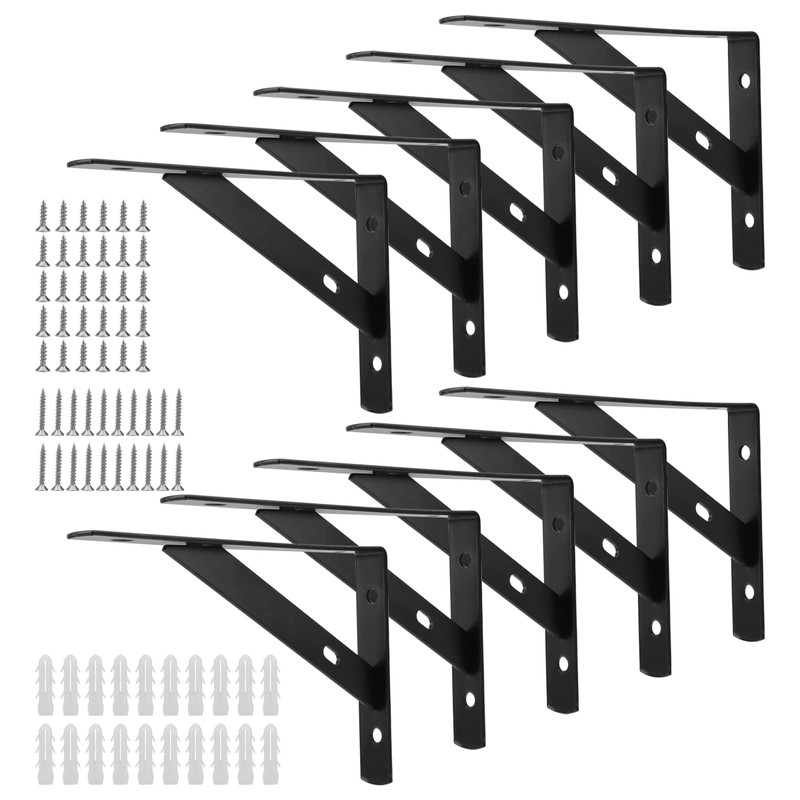 - ACCESSORIES AND DIMENSIONS: There are a total of 10 triangular brackets with dimensions of 95 x 150 x 16mm/6 inches. Each set of wall mount shelf bracket is equipped with 20 long screws, 30 short screws, and 20 expansion valves. You don't need to purchase additional accessories.