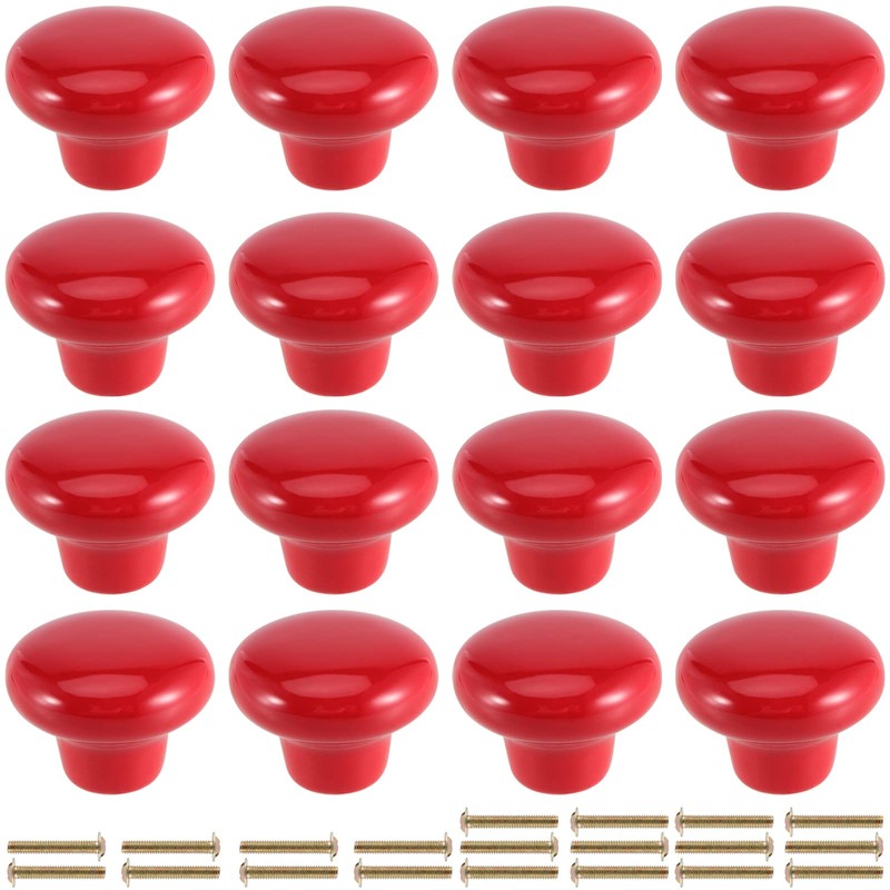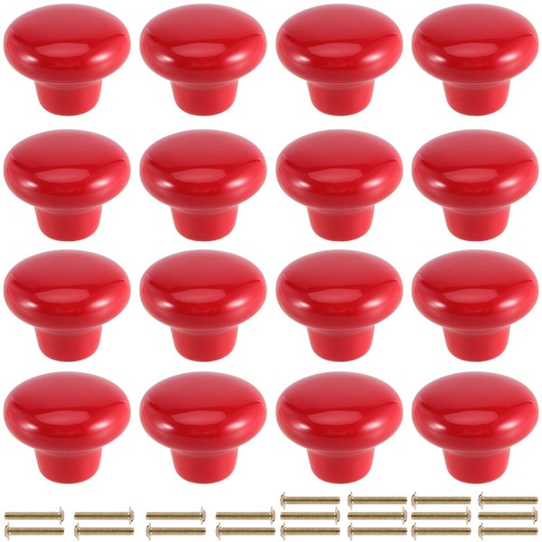 JAPCHET 16 Pack Red Ceramic Cabinet Knobs, 32 MM/1.26Inch Single Hole Ceramic Door Knobs with Screws, Button Round Mushroom Door Pulls for Kitchen Cabinet, Cupboard, Wardrobe, Dresser
