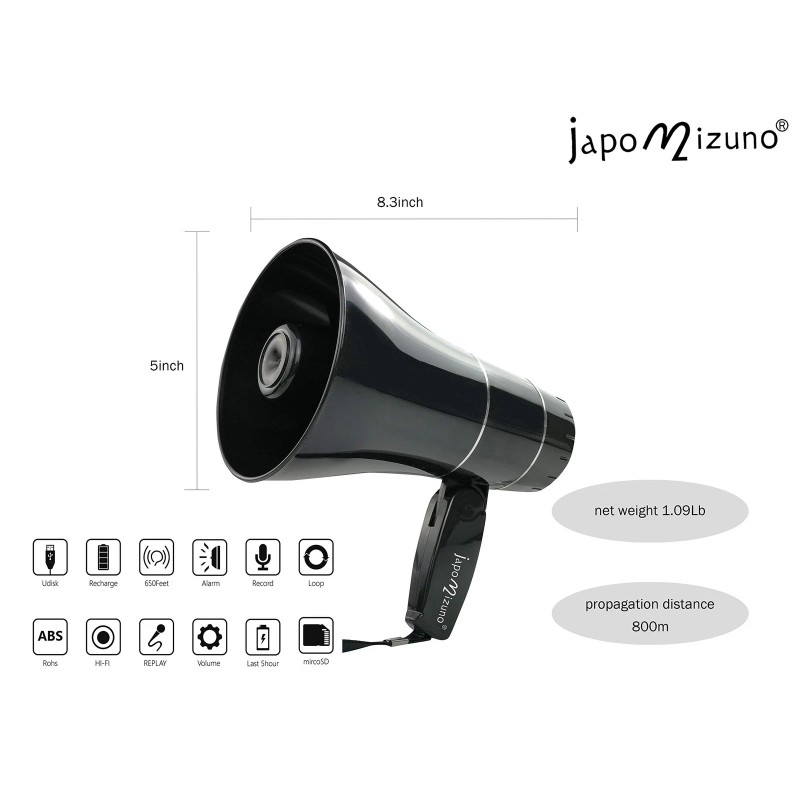 japomizuno Rechargeable Bullhorn Megaphone Speaker With 240S Recording, Emergency
