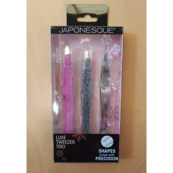 - [Japonesque Luxe Tweezer Trio - Pink Rubber Grip/Silver Sparkle/SSilver Full Size Point - Slant - Point/Slant ]**