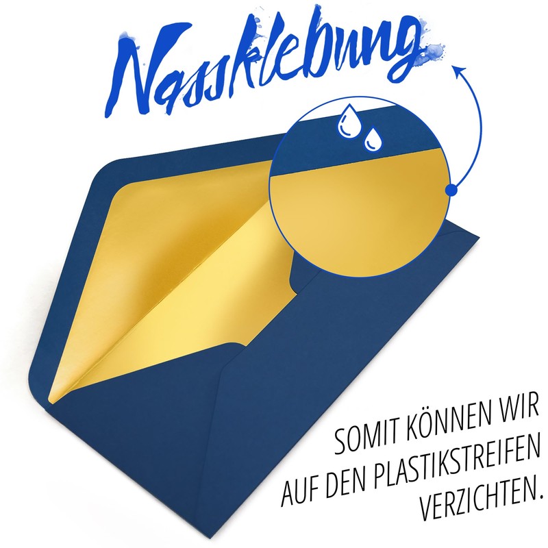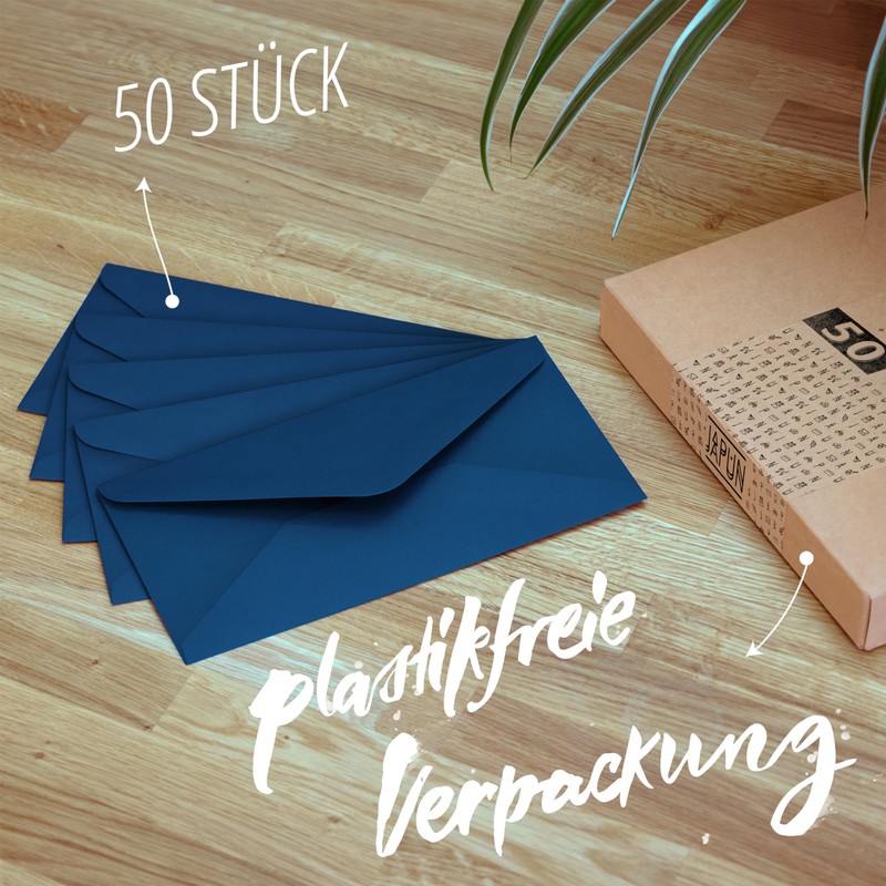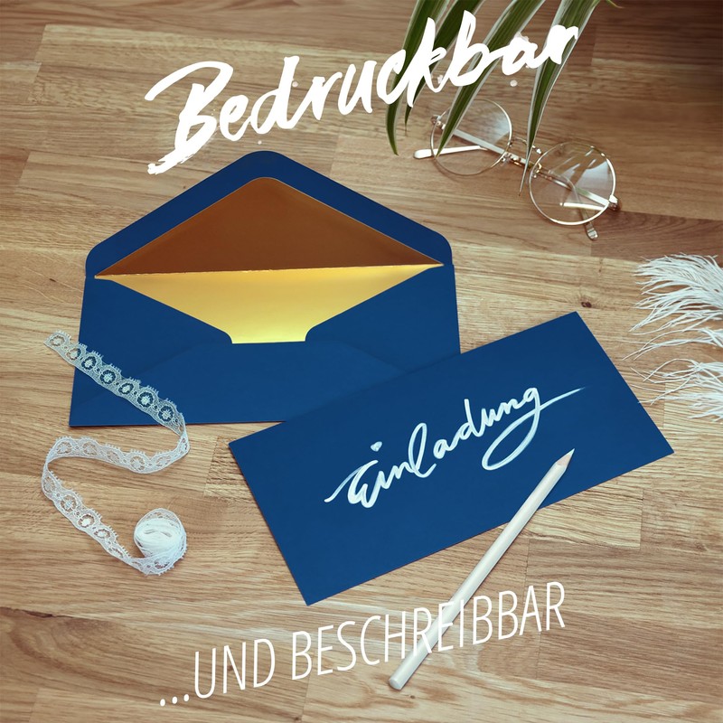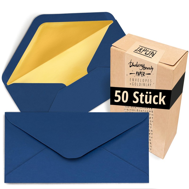 Japun Envelopes (50 pieces), envelope, envelope without window, DIN long, 220 x 110 mm, inside: gold, paper colour: blue