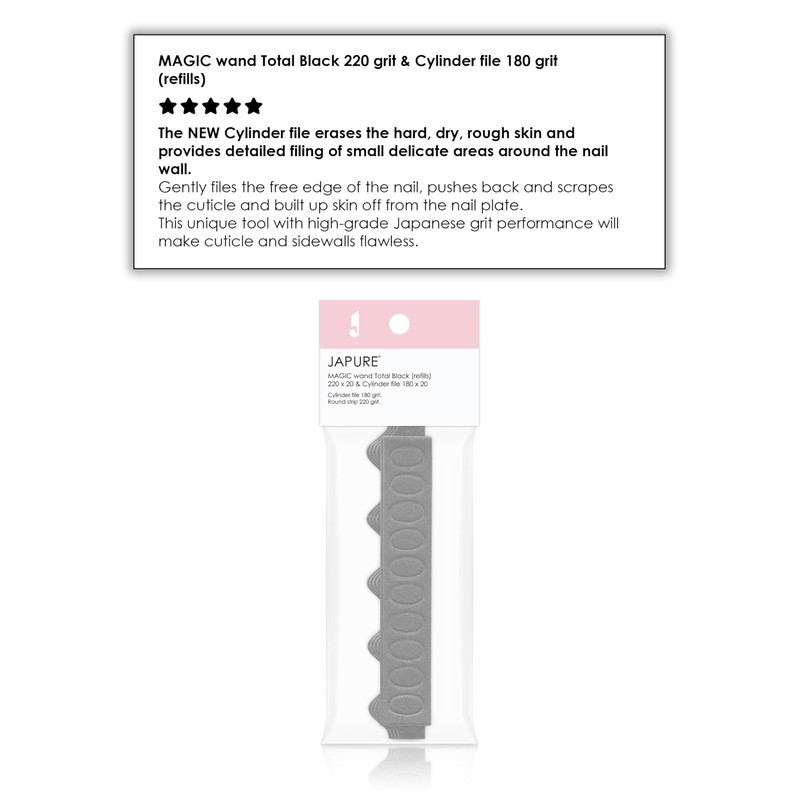 - JAPURE brand specializes in producing various premium quality manicure and pedicure tools. As professional nail technicians we know all about it and even more. Refills for Japure «Magic Wand Total Black» is specifically designed for American customers to be durable and long-lasting to provide healthy and shiny nails and safe your money buying the new tool.