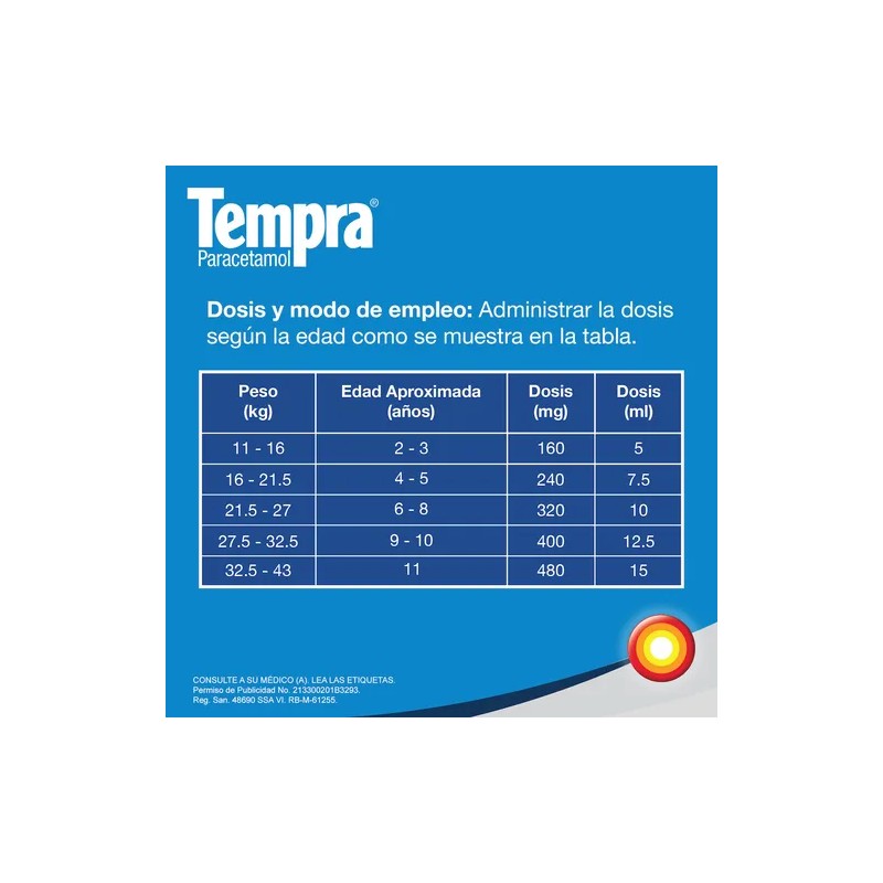 El Tempra Jarabe Infantil es un analgésico y antipirético seguro, formulado especialmente para niños de 2 a 11 años, con un delicioso sabor a fresa que facilita su administración.