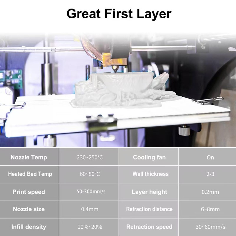 - 😀【Good Mechanical Properties】PETG features 80˚C (144˚F) heat resistance and a higher toughness than regular PLA.Many different colors and effects for your everyday creations.Printing Settings:230˚C-250˚C.