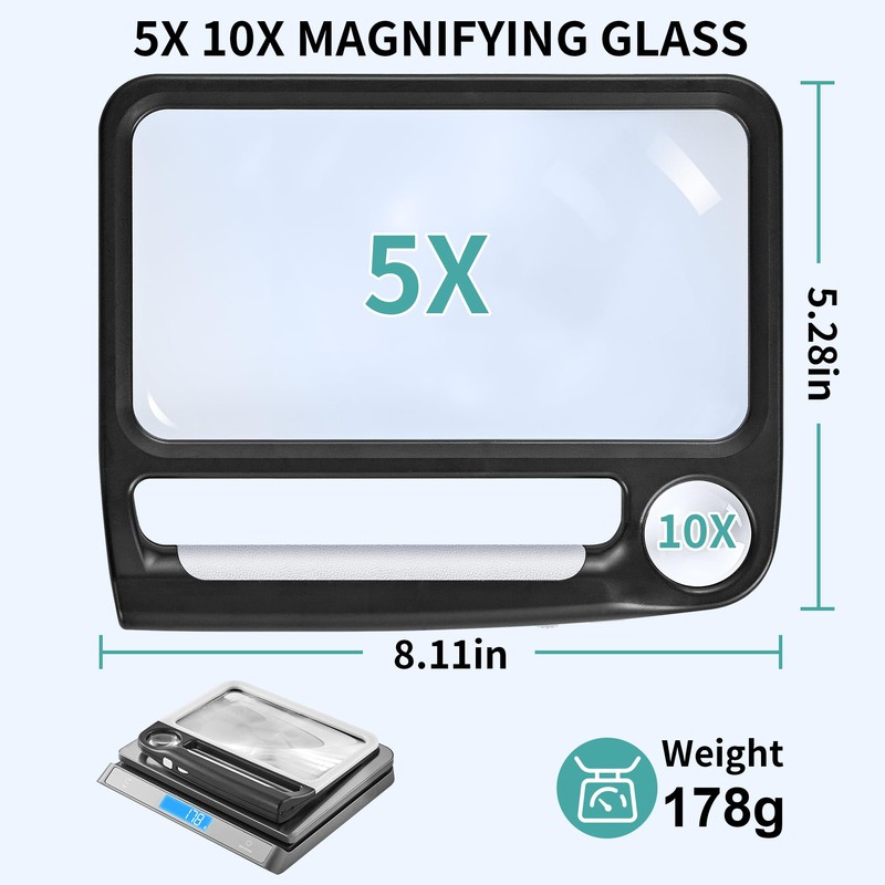 - 5X 10X Large Magnifier: This 5X 10X magnifying glass is made from premium acrylic, providing clear, distortion-free images. Designed specifically for seniors and those with low vision, it meets various needs such as reading, observing, and crafting.