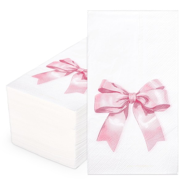 JarThenaAMCS 100 Pcs Pink Bow Guest Napkins Bowknot Coquette Disposable Napkins Watercolor Dinner Hand Paper Napkins for Bathroom Birthday Baby Shower Party Table Supplies