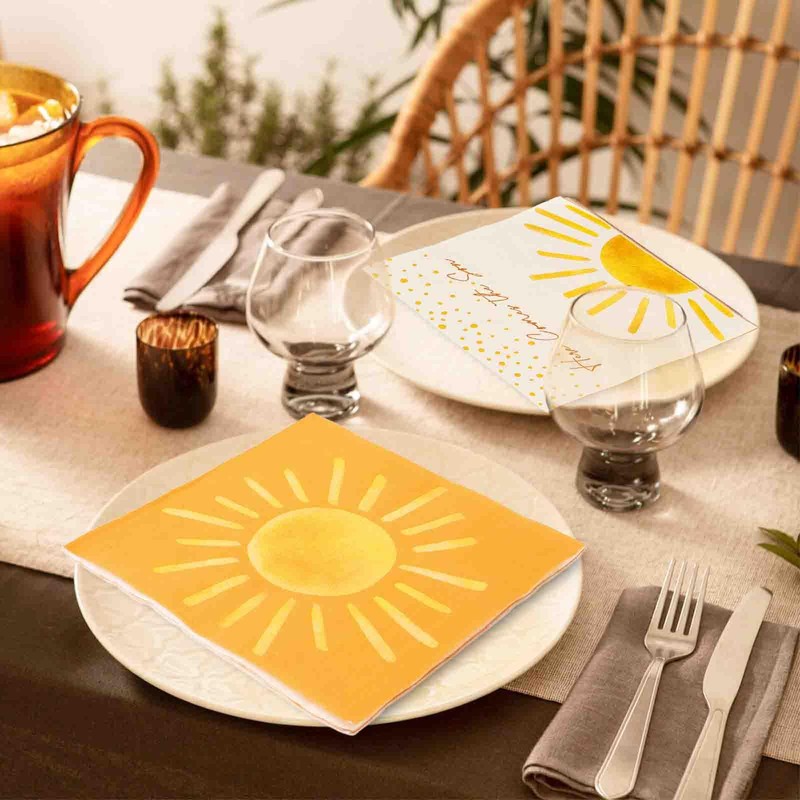 JarThenaAMCS 100Pcs Boho Sun Paper Napkin Double-Sided Disposable Sunshine Baby Shower Luncheon Napkin First Trip Around the Sun Party Napkins for Party Supplies Table Decor