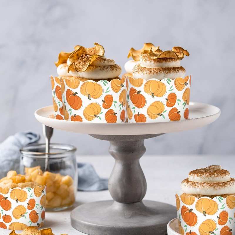 100pcs paper baking cups are printed with watercolor pumpkin patterns, can be applied in many occasions.