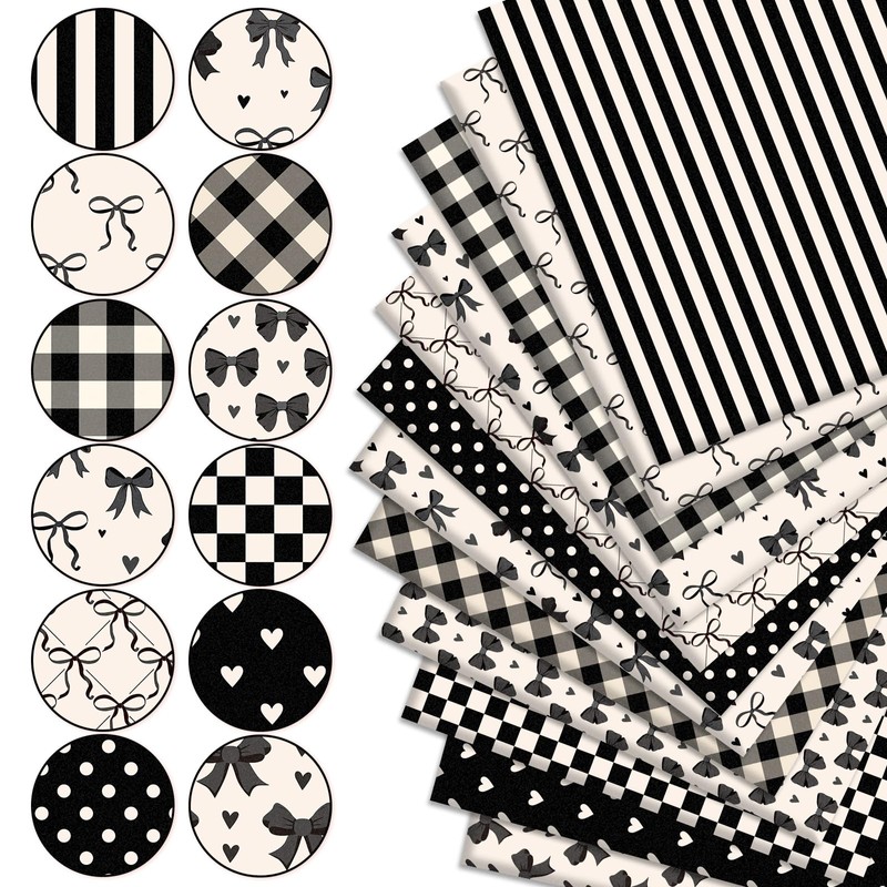 - STYLISH DESIGN: These cotton fabrics are all colored in black and milky white, printed with bow, stripe, buffalo plaid, dot, heart, etc., stylish and adorable, suitable for various occasions