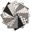 JarThenaAMCS 12Pcs Bow Cotton Fabric Bundles 18 x 22 Inch Plaid Dot Stripe Heart Bow Fat Quarters Black Milky White Sewing Fabrics for DIY Craft Party Decor