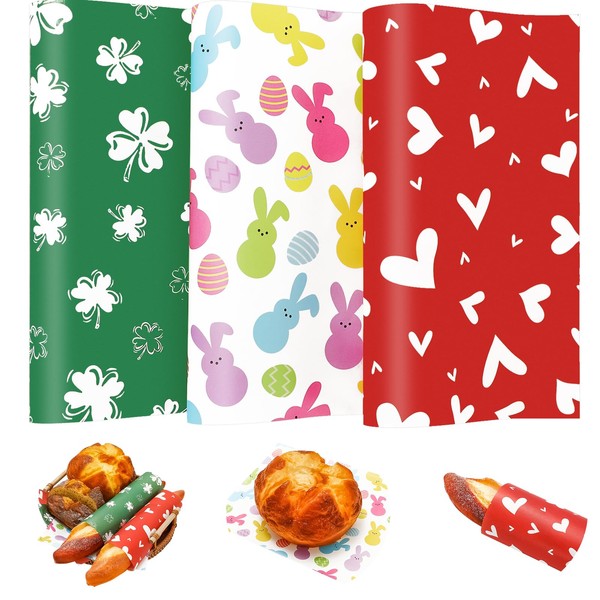 JarThenaAMCS 150Pcs Valentine's Day Easter St. Patrick's Day Wax Paper Bunny Heart Shamrock Deli Paper Sandwich Wrap Paper Waterproof Oil-Proof Picnic Liner For Party Kitchen Supplies, 9.8 x 8.3 In