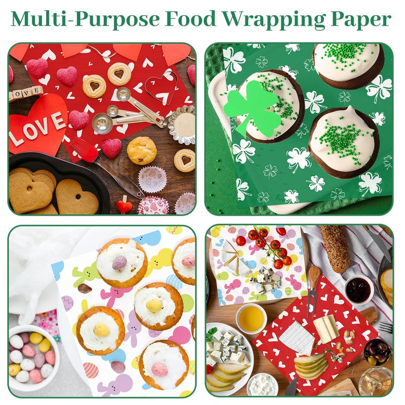 - 3 DESIGNS: Our wax paper are featuring the theme of Valentine’ s Day, Easter and St. Patrick’s Day, patterned with classic elements of bunny, heart and shamrock, 3 holiday styles in available. While enriching the appearance of the wax paper, it also increase the fun and aesthetic diversity