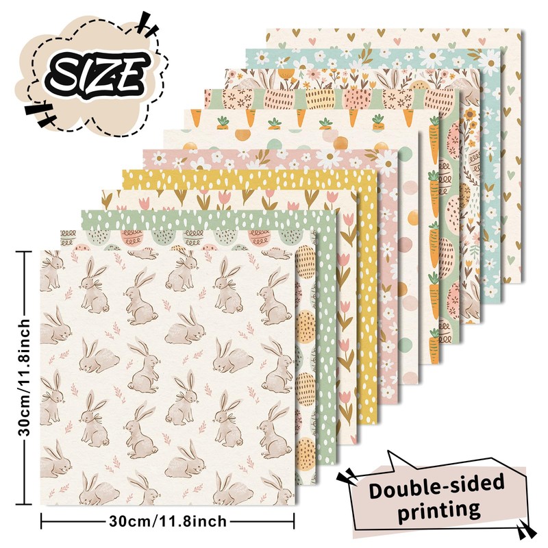 - ASSORTED DESIGNS: Our pattern paper is designed with double-sided printing of Easter theme patterns, such as bunny, egg, flower, etc., delicate and attractive, suitable for spring holiday or Easter decoration needs.