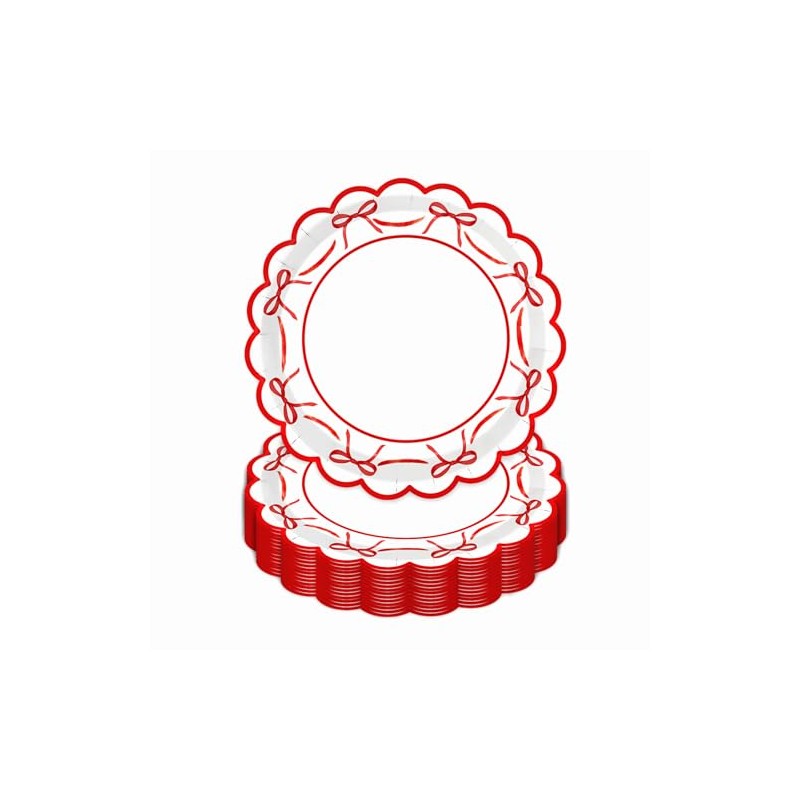 - DELICATE THEME: Design with bow and scalloped edges mainly in red, making the paper plates quite eye-catching and suitable for party supplies