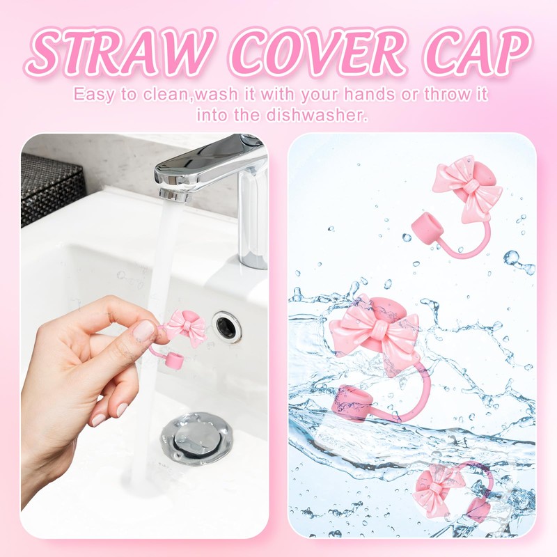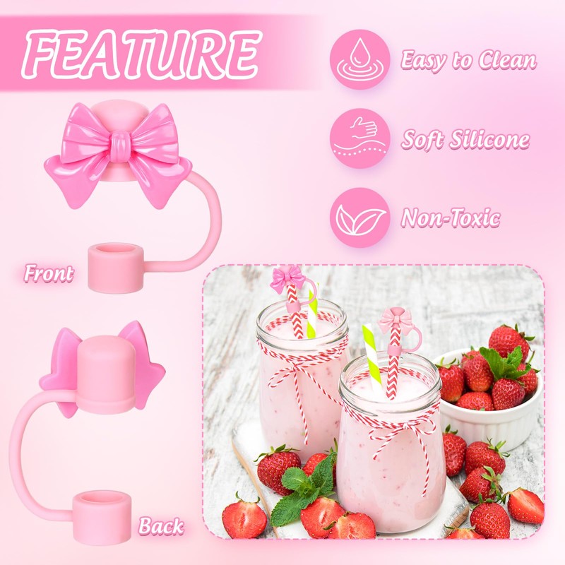 - PINK BOW DESIGN: The reusable straw caps are designed with bowknot shape in dark pink and light pink, super lovely and appealing, suitable for party decorations and daily uses.
