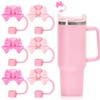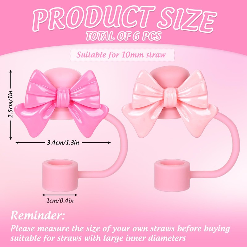 JarThenaAMCS 6Pcs Bow Straw Covers Lovely Pink Bowknot Portable Drinking Straw Tips Cover Reusable Cute Straw Protector Topper for 0.4in Straws, Cup Accessories