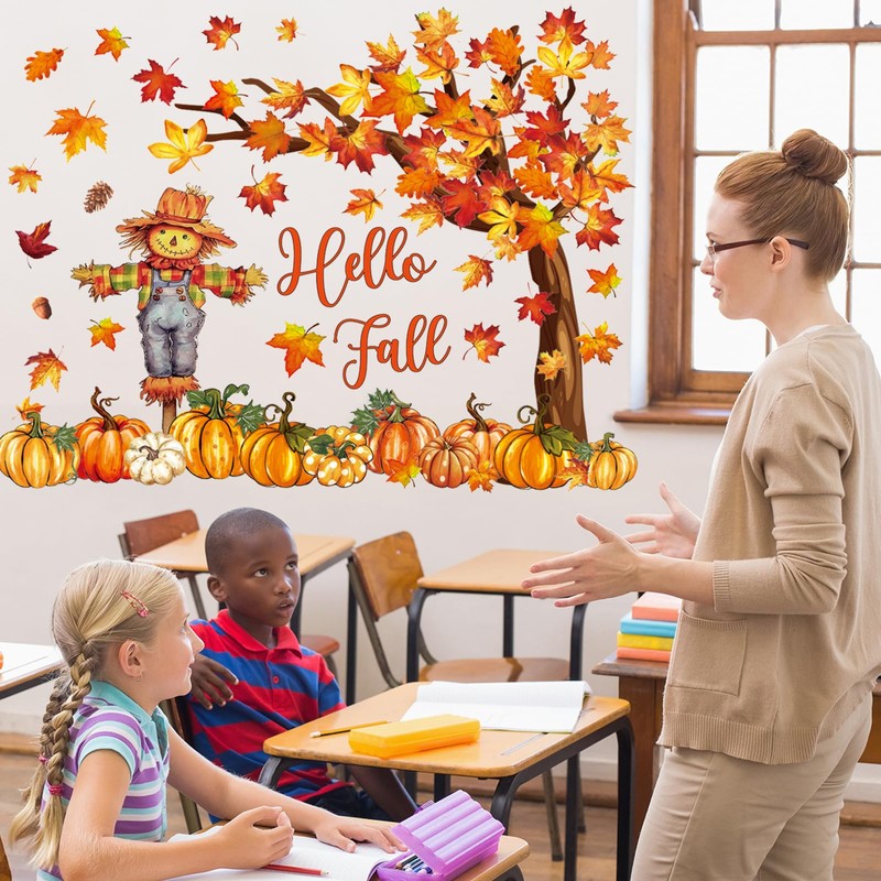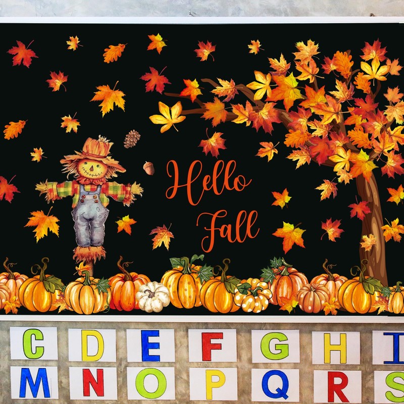 - WATERCOLOR FALL THEME: Our decoration kit adopts fall classroom tree design, featuring with watercolor maple leaves, pumpkins, scarecrow, which are classic autumn elements, combined with holiday greeting Hello Fall, rich varieties and delicate patterns bring more vitality and fun to your fall classroom bulletin board decor!