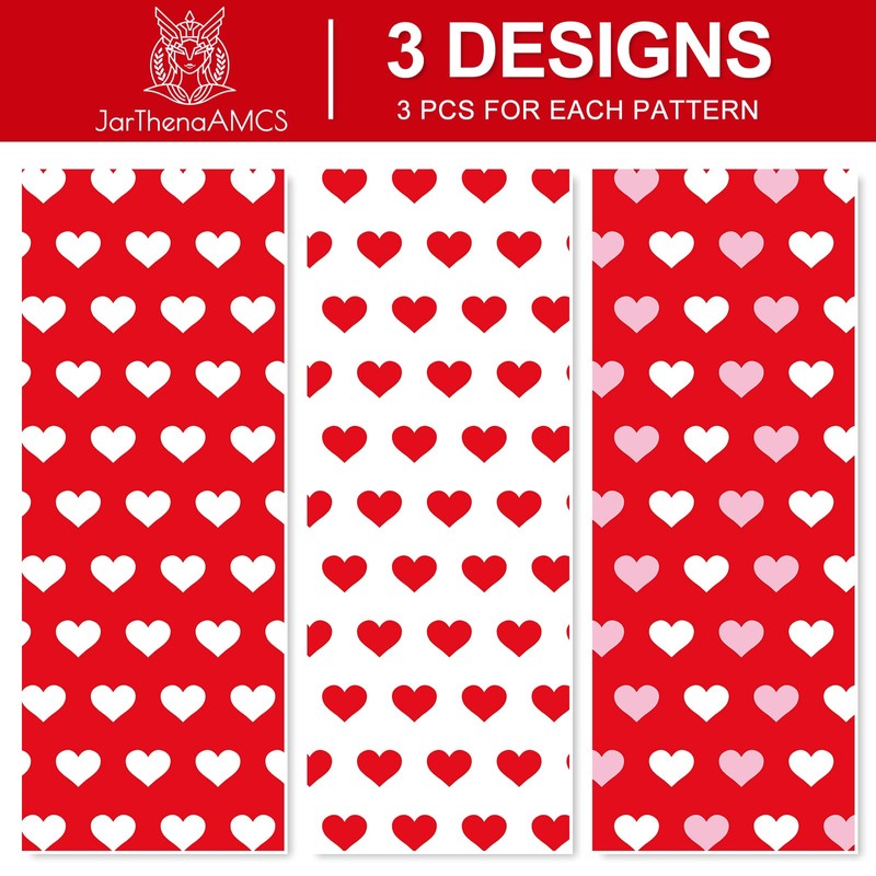 JarThenaAMCS 9 Sheet Valentine's Day Wrapping Paper -Not Roll- Red Pink White Heart Gift Wrap Paper Folded Flat Craft Paper for DIY Crafts Party Supplies, 19.7 x 27.6 Inch
