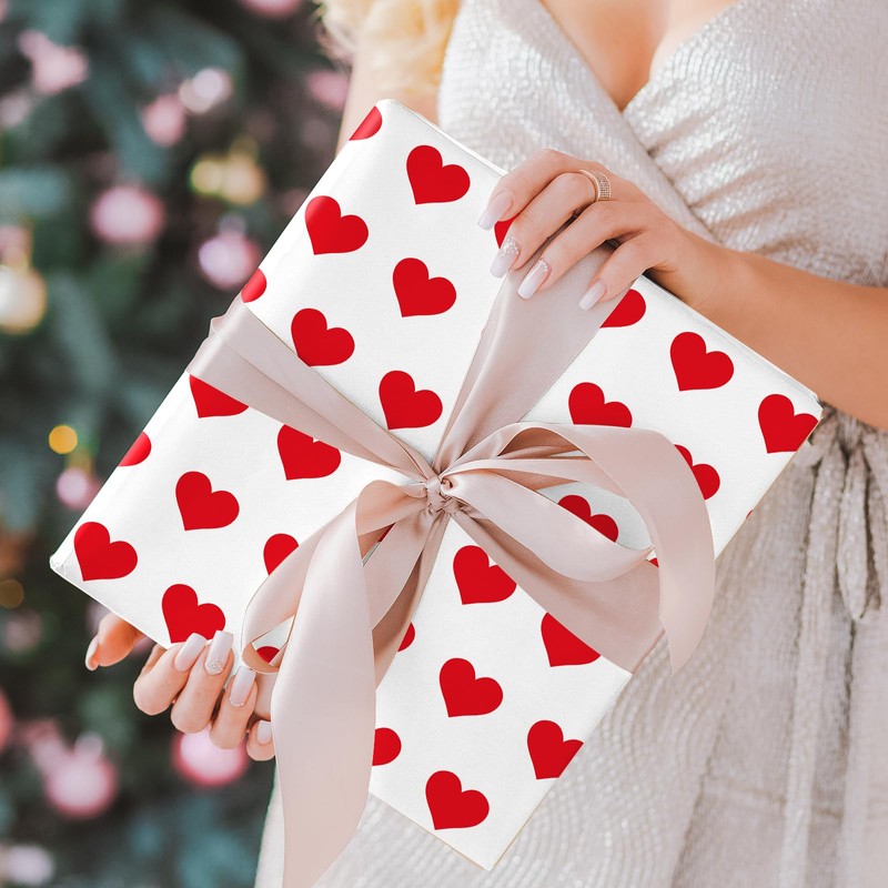 - SWEET THEME: Our wrapping paper match Valentine's Day theme, colored in red, pink and white, printed with heart patterns, full of romantic atmosphere, wonderful supplies for wrapping decoration