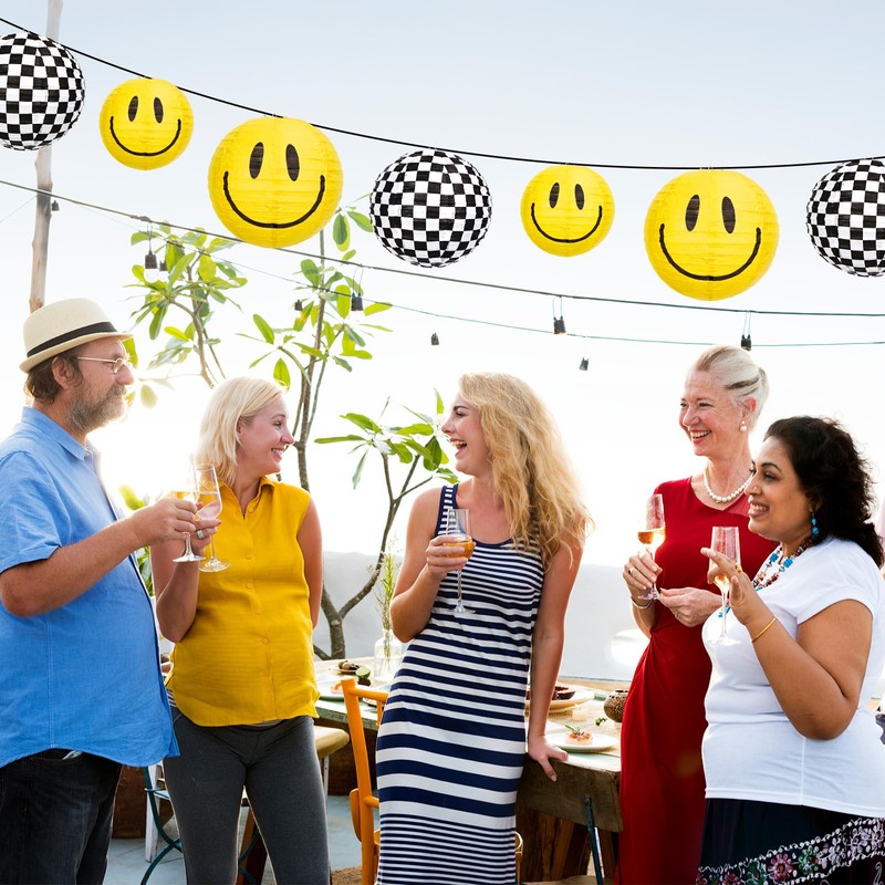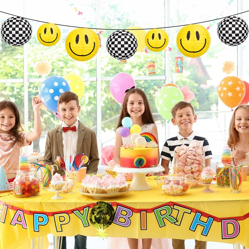 - ONE HAPPY DUDE THEME: Our paper lanterns featuring classic yellow smile face and black white checkered, simple but eyes-catching, echo well the one happy dude theme, great supplies for daily and party use.V