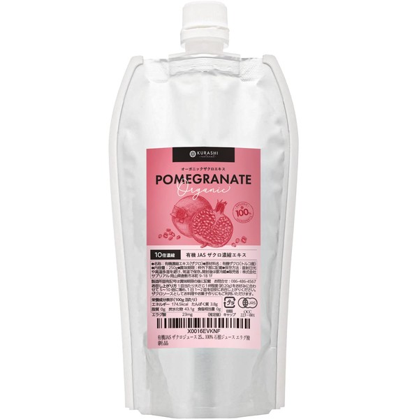 - ✅【お得で便利な10倍濃縮】10倍濃縮タイプのため、お好みの濃さに調整いただけます。コンパクトで省スペースのためとても便利!1袋で2500g分のザクロジュースをお作りいただけます。(250gを10倍希釈時)
