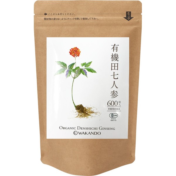 和漢堂 有機 田七人参 サプリメント 有機JAS認証 サポニン サプリ 100%有機田七人参 600粒入 30〜90日分 (1袋)
