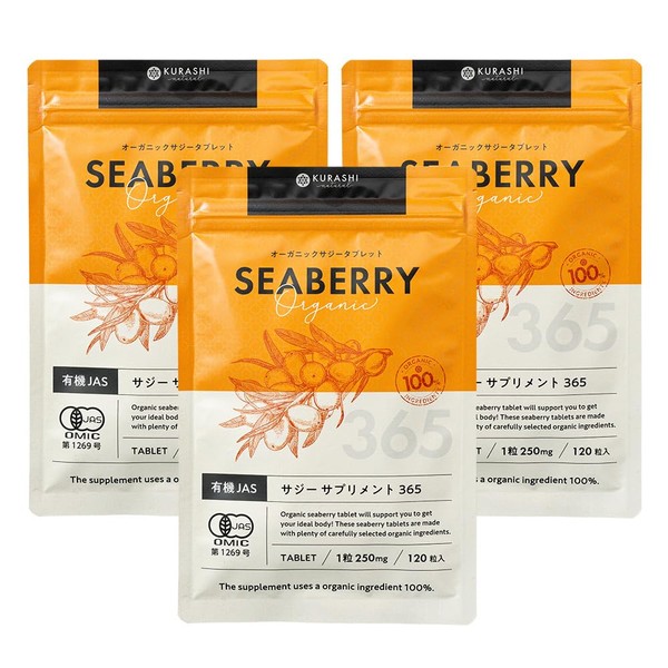 有機JAS サジー サプリ 250mg×120粒 3個セット サジー果実 約136個分を4錠に凝縮 タブレット サジー オーガニック サプリメント 錠剤 鉄分 沙棘 ダイエット 美容 鉄 補給 アミノ酸 シーベリー サジーサプリ SAJI BERRY SEABERRY