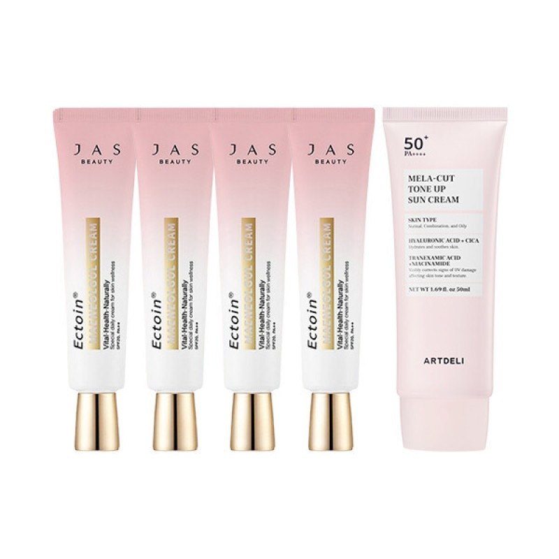 Jas Bare Face Cream Pink Edition 30ml x4 + Art Deli Sunscreen 50ml / 쟈스 맨얼굴 크림 핑크에디션 30ml x4 + 아트델리 선크림 50ml