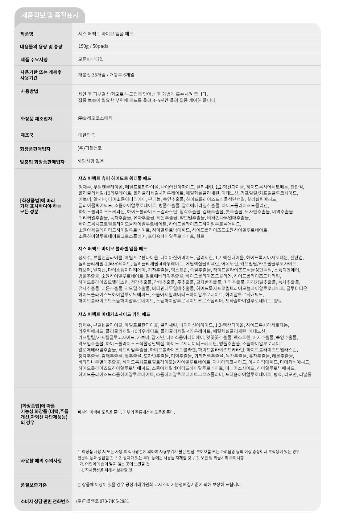 쟈스 퍼펙트 토너 패드 3종 50매 1+1