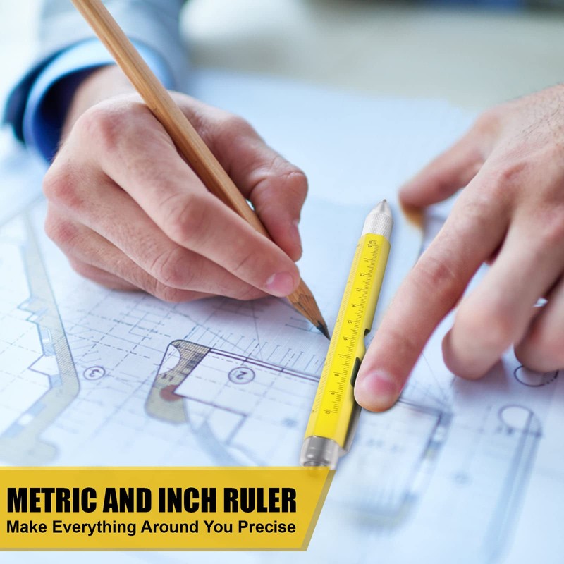Jasee Gifts for Men, 9 in 1 Multitool Pen Set, Cool Gadgets for Men Dad Him Boyfriend Husband Fathers Day Birthday Gifts, Tool Pen with Led Light, Stylus, Screwdriver, Bottle Opener, Ruler, Level(Yellow)