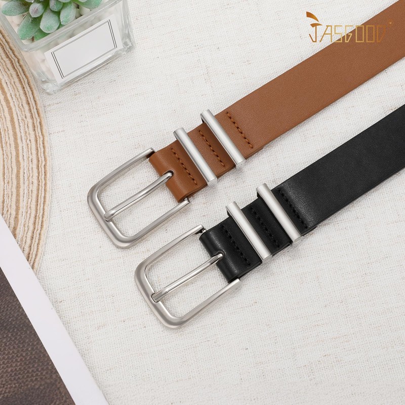 JASGOOD 2 Pack Women Belts for Jeans Pants Dresses Ladies Leather Waist Belts with Silver Buckle