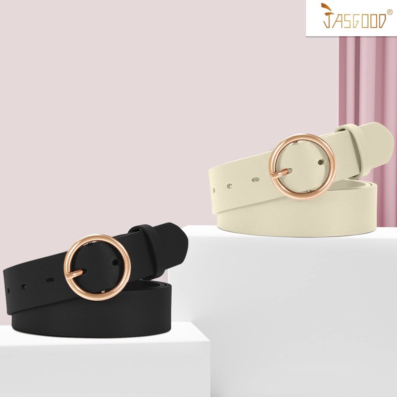 JASGOOD 2 Pack Women Leather Belt for Jeans Dress PU Leather Ladies Belt with Gold O Ring Buckle