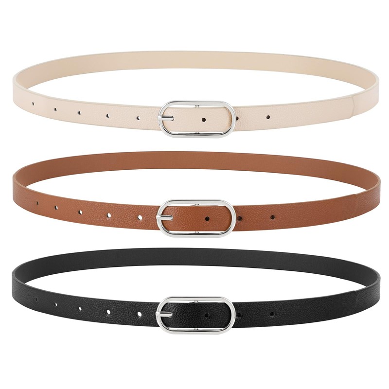 - Elegant Fashion Women's Belt: Thin waist belt for women light weight, suitable for tightening dresses, can also make loose clothes appear more fit, tight belt with two ways to tie, do not lose classic and elegant. The stylish oval button-down adds to the beauty of your outfit. A thin belt for jeans can define your waist and highlight your perfect figure.