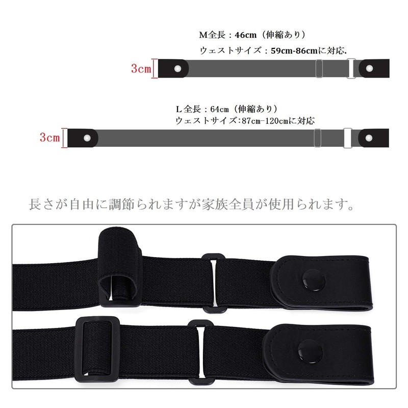 Jasgood Belt, Women's, Men's, Elastic Belt, Unisex, No Buckle, Invisible Belt, One Size Fits Most, Stylish, Casual, Quick on/off, Large Size, Black, 12 black 02, M