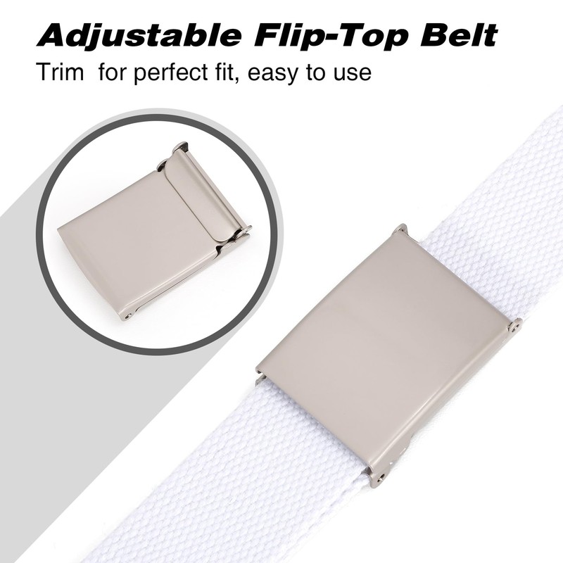 - Flip-Top Buckle - Features a flip top military style buckle that holds tight and stays secure, even better. The polished black finish is smooth and stylish. Press on lock design, these web belts for men can be easily clamped and adjusted to any tightness.