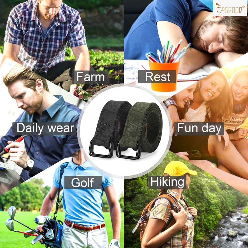 - Casual &Stylish Web Belts: This 2 pack canvas cloth belts have two ways to wearing which you can tied into the shape you like, or normal wearing. More choice for you. Not only casual style but fashion elements, we can carry it well. It good fit with slacks,work pants, jeans,football shorts, uniform for men,women, students. Perfect for outdoor activity like sports, climbing, camping,traveling, golf. And doesn't slip over the course of the day! An great accessory goes with everything!