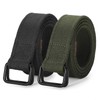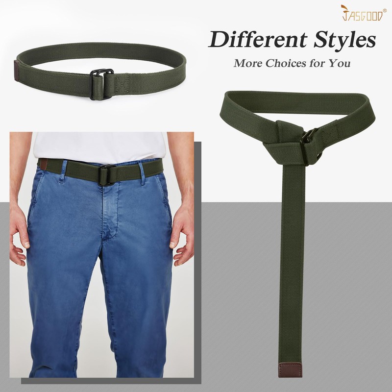 JASGOOD Men Canvas Fabric Belts Casual Web Cloth Belts with Black Double Ring Buckle 2 Pack (Black+Green,Fits Waist Size 33"-38")
