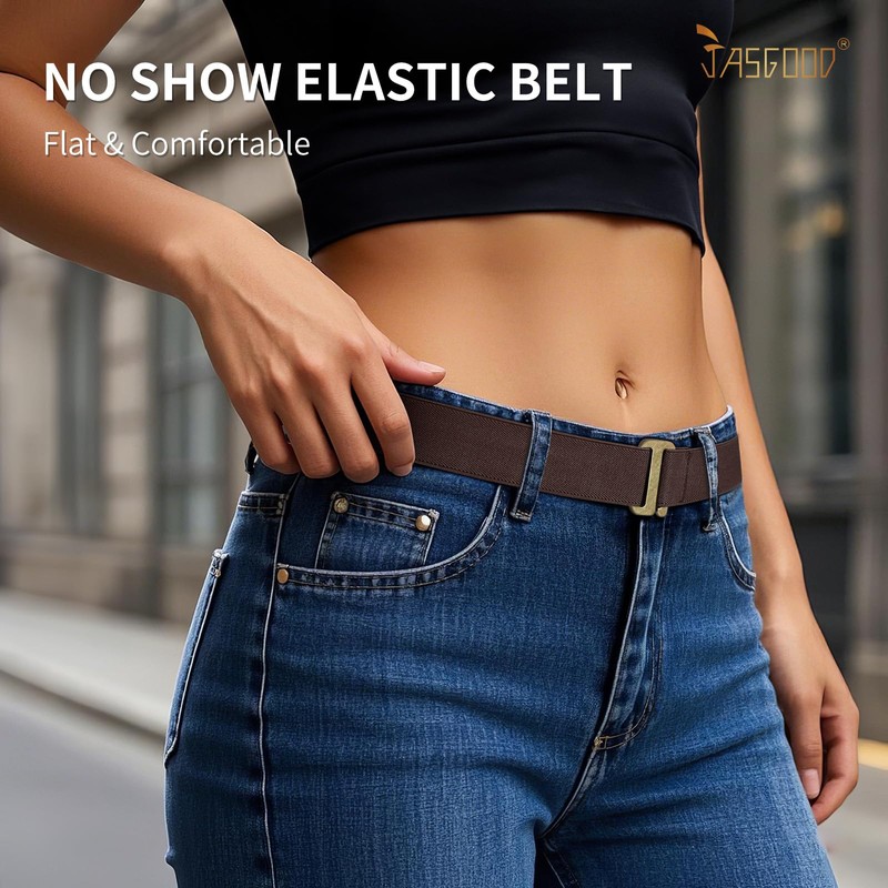JASGOOD No Show Women Stretch Belt Invisible Elastic Web Strap Belt with Flat Buckle for Jeans Pants Dresses