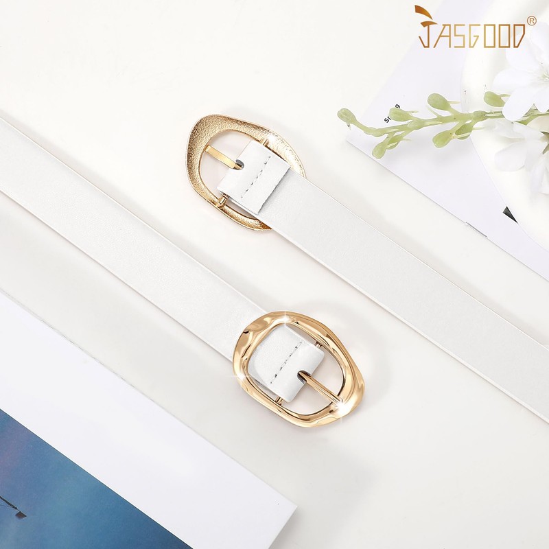 JASGOOD Women Leather Belt for Jeans Pants Ladies Casual Waist Belt Fashion Women Belt with Gold Buckle,White