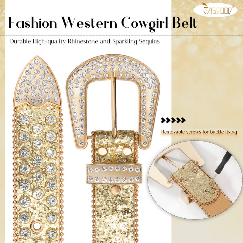 - ✨Suitable for Multi Occasions✨This is a unisex glitter cowboy cowgirl belt that is popular with the youth. Looks great on adults as well. These rhinestone belts are suitable for all seasons and different occasions, you can wear JASGOOD rhinestone belts to parties, night clubs, country concerts,music festivals, dates and more, Fits and looks great.