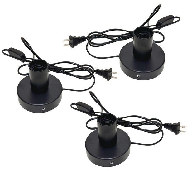 Jashem Polished Metal Light Bulb Socket E26 E27 Desktop Lamp Base Bulbs Holder Replacement Base for Holding Bulb, 6 Feet Black Cord on Off Switch Plug,3 Packs
