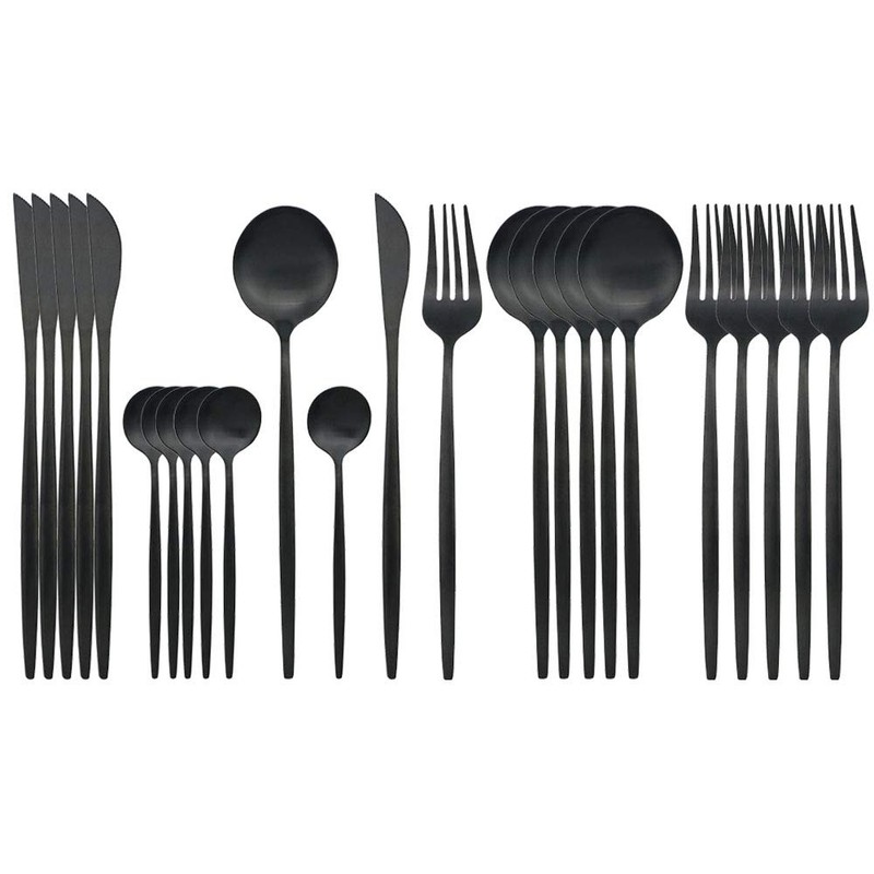 JASHII Flatware Set, 24-piece Silverware Cutlery Set with Serving Pieces, Stainless Steel Utensils, Include Knife/Fork/Spoon, Matte Finish, Dishwasher Safe, Service for 6 (Black)
