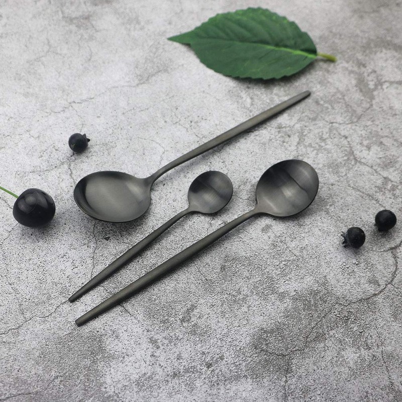 - 【Unique Design】 Durable stainless steel: Crafted by premium rustproof black stainless steel, the black matte flatware set will not easy bend or break, the proper thickness and weight ensure to provide comfortable grip, safe washing or cleaning.