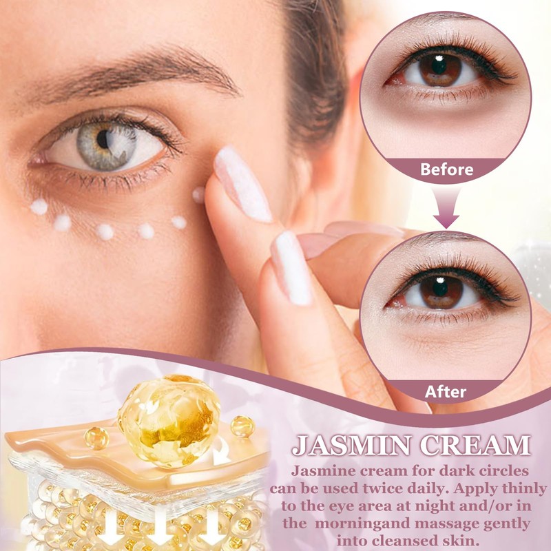 - Wide applicability: no matter what skin type you are, male or female, the jasmine eye cream can be your assistant in solving eye problems. Reduce skin problems under the eyes, brighten skin tone, make your eyes more radiant and youthful.