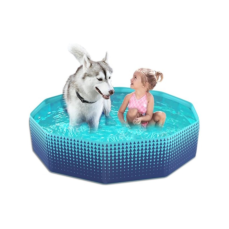 Jasonwell Foldable Dog Kiddie Pool - Hard Plastic Kids Paddling Pool Toddler Baby Swimming Pools for Backyard Collapsible Whelping Box Pet Doggie Cats Wading Pools Bathtub for Puppy Large Dogs 48In