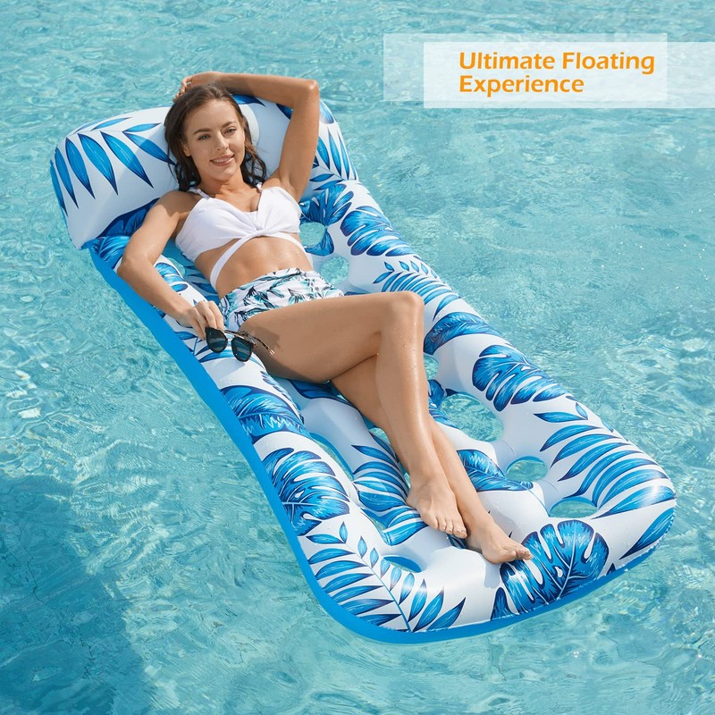 - Comfortable Pool Lounge with Headrest - Ultimate floating relaxation with supportive headrest and no wires. Perfect inflatables floaters loungers for pool lake beach ocean and more water fun.
