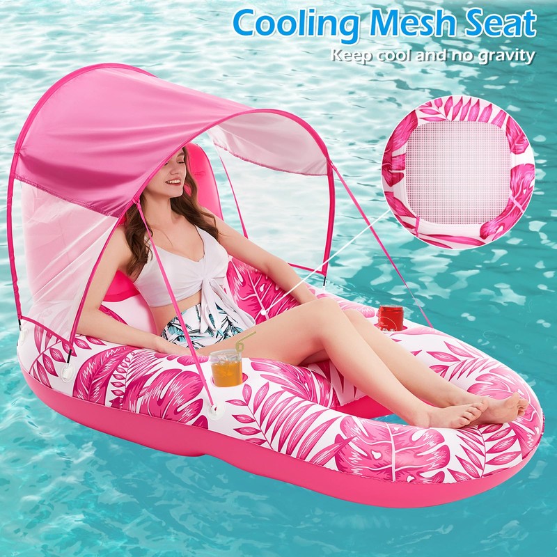 Jasonwell Pool Floats with Canopy - Inflatable Pool Float Adult Lounger Floaties Raft Floating Chair for Swimming Pool Lake Water Lounge Float with Cup Holders Beach Pool Party Toys for Adults (Rose)
