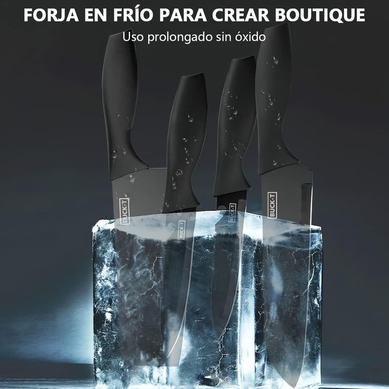 - 【MATERIAL DE ALTA CALIDAD】: Los cuchillos están hechos de acero inoxidable de alta calidad con tecnología de oxidación, cuando se usan, los cuchillos no manchan, no se oxidan, son afilados y resistentes al desgaste, más duraderos.
