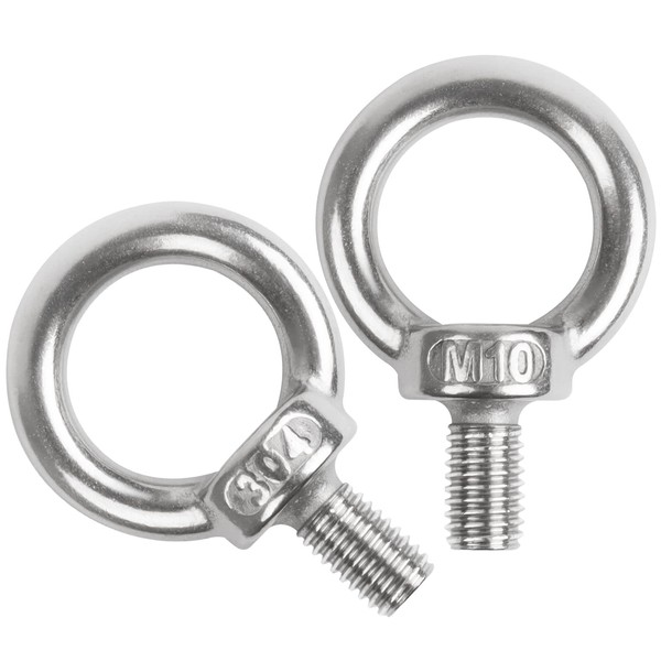 JatilEr Pack of 2 M10 x 18 Eye Bolts, Stainless Steel, 304 Stainless Steel Ey...