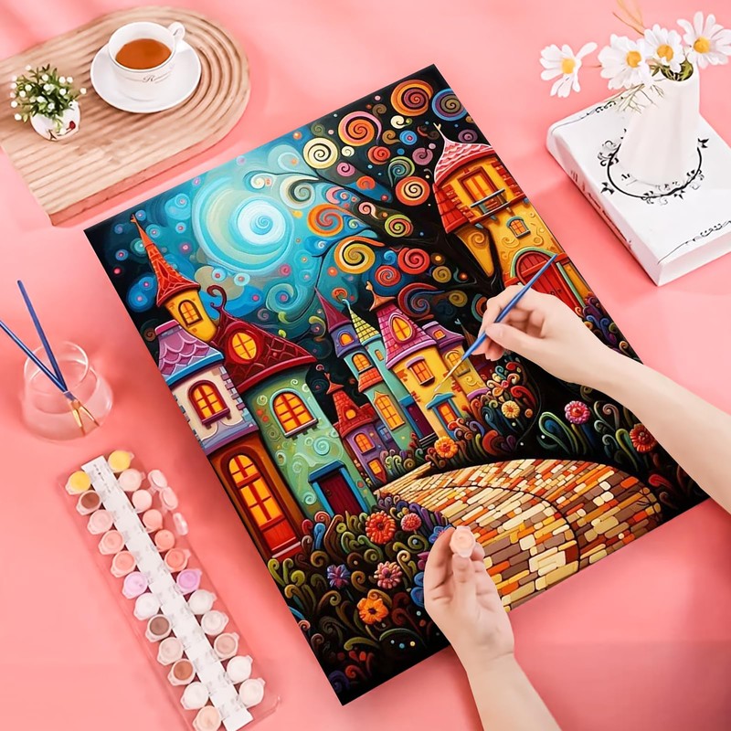 JATOK Paint by Numbers Adults, Paint by Numbers, DIY City with Brushes and Acrylic Paints, Hand Painted Oil Painting Canvas for Home Decor, Without Frame (40 x 50 cm / 16 x 20 inches)